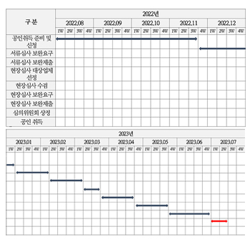 | 서류심사 보완요구 | * ’22.05.30 공인 신청 제출 일로부터 60일 이내 보완 요구 예정 |