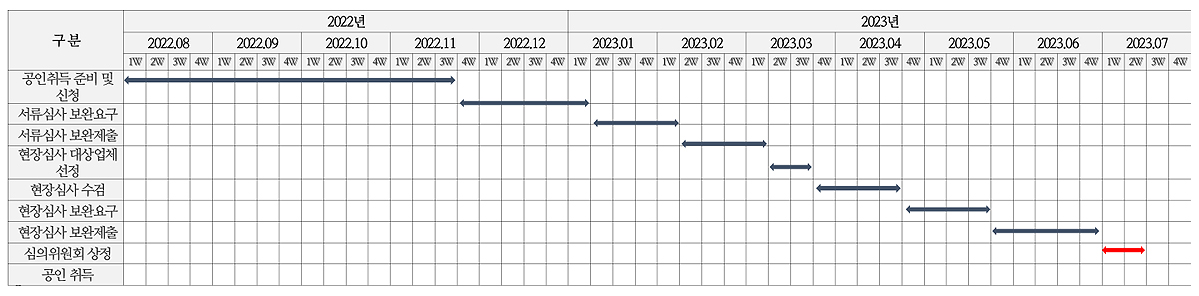 | 공인 취득 | * 심의위원회 통과 후 공인 수여식 통한 공인 취득 완료 |